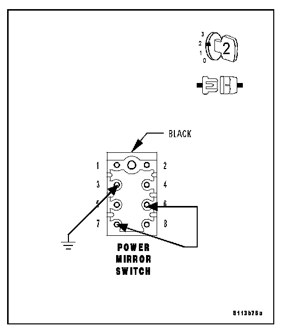 Connect a jumper wire between cavity 6 and cavity 7 of the Power Mirror Switch harness connector.