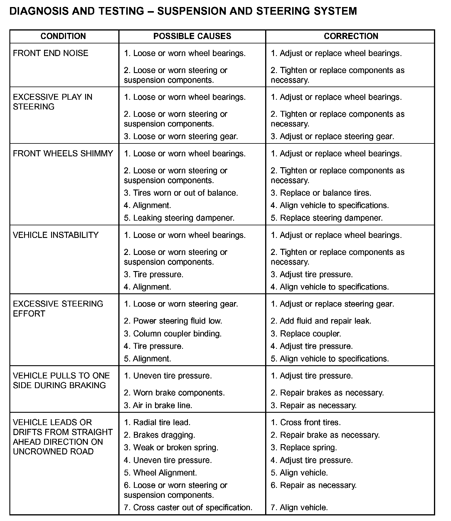 DIAGNOSIS AND TESTING - SUSPENSION AND STEERING SYSTEM (part 1):