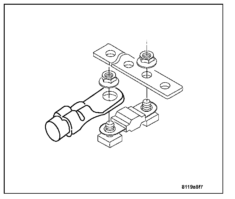 2. Install the plate and the electrical lead to the engine fuse block.