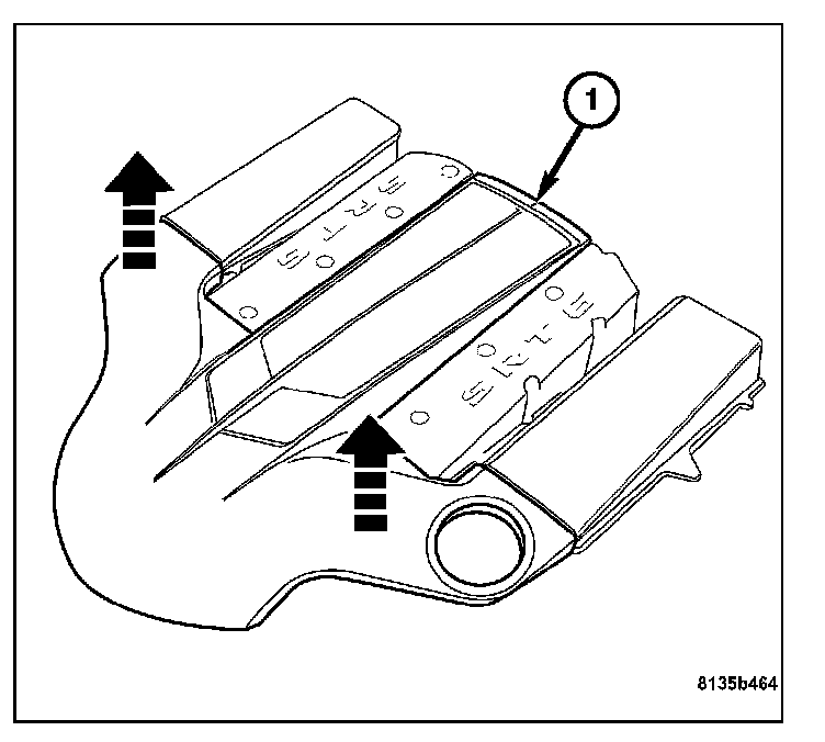 2. Remove the engine cover (1). Grasp both corners of the engine cover, and pull up firmly.