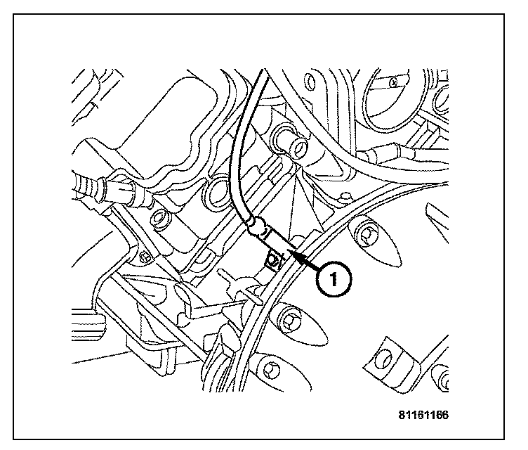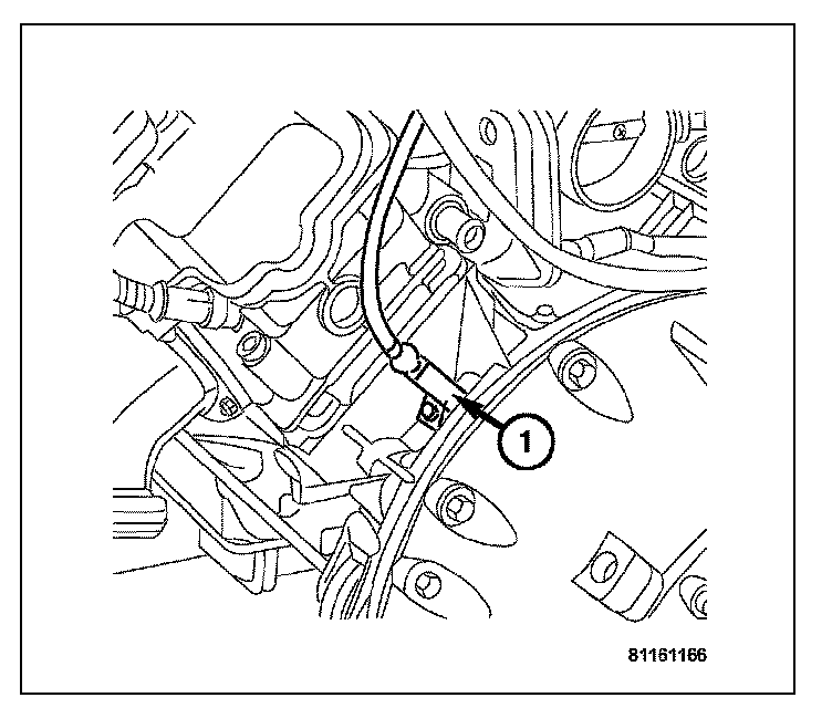 4. Remove the retaining bolt and the crankshaft position sensor (1).