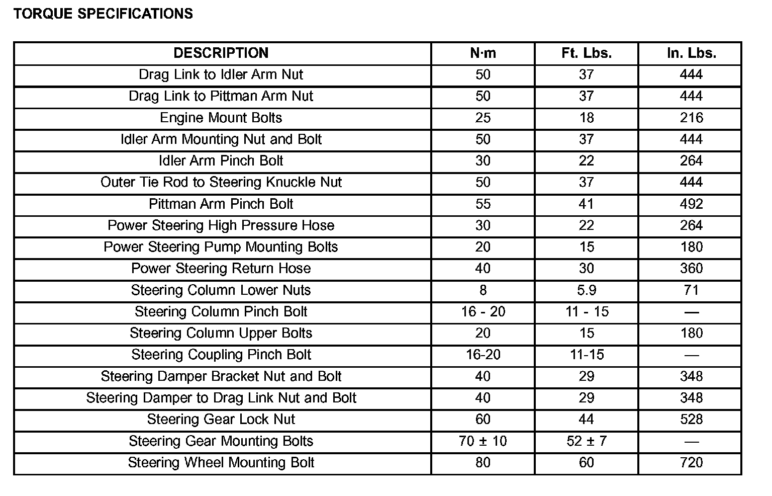 TORQUE SPECIFICATIONS: