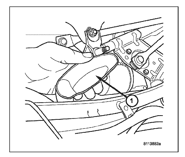 1. Align the wiper module into the cowl over the two upper attachment nut mounting studs (1).