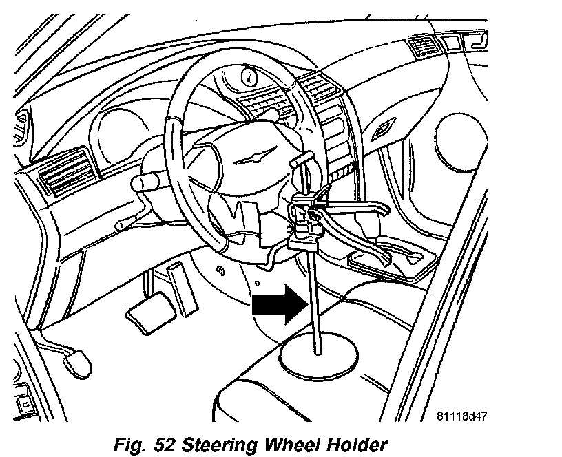 10) Remove steering wheel holder (Fig. 52).
