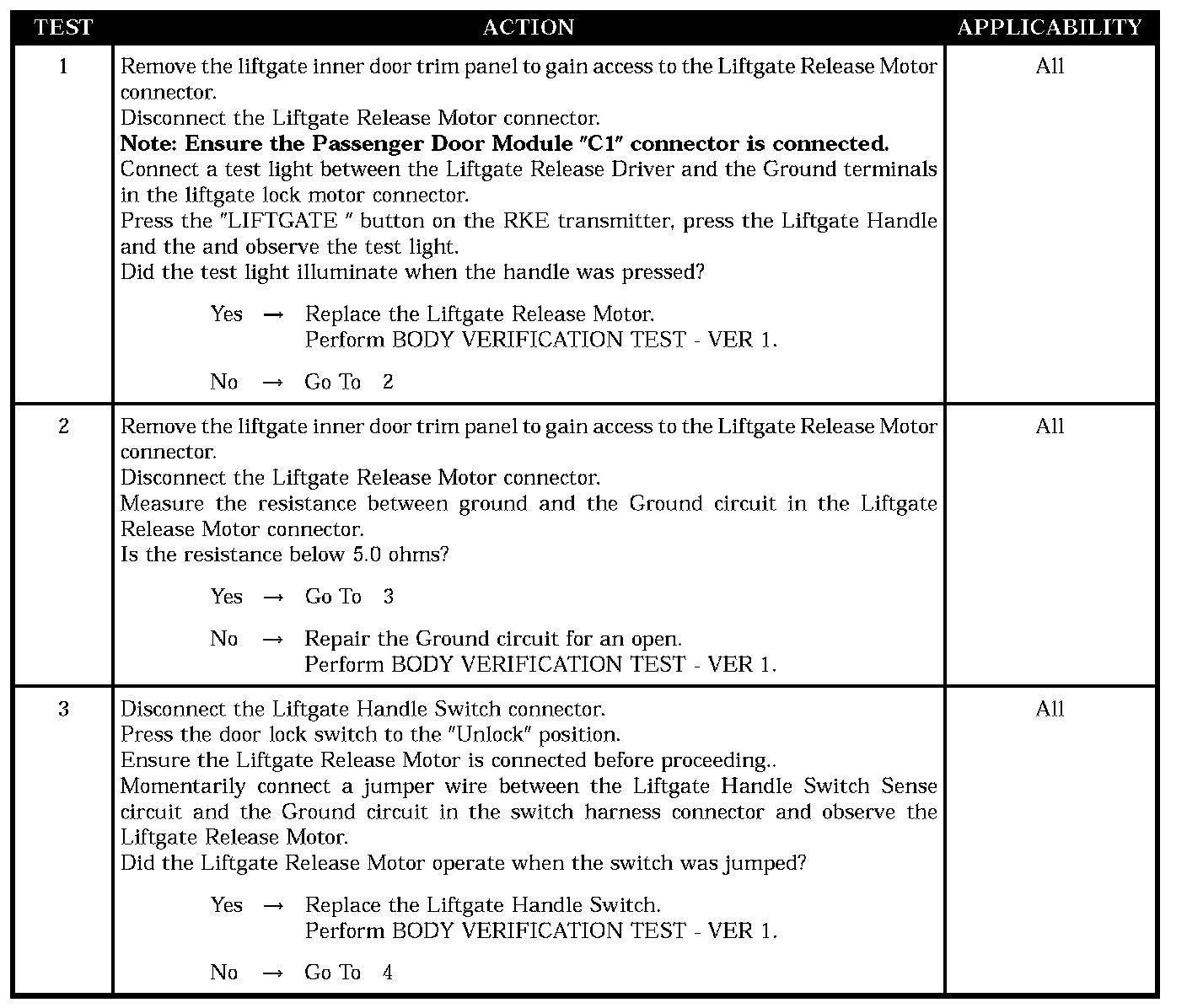 LIFTGATE FAILS TO RELEASE - WITHOUT POWER LIFTGATE