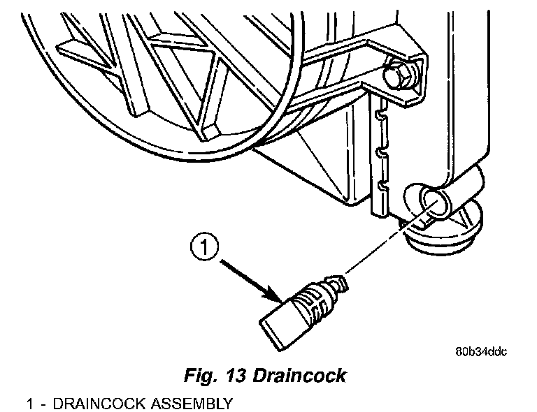 3) With the stem at the 9:00 o'clock position, pull the draincock assembly from the radiator tank (Fig. 13).