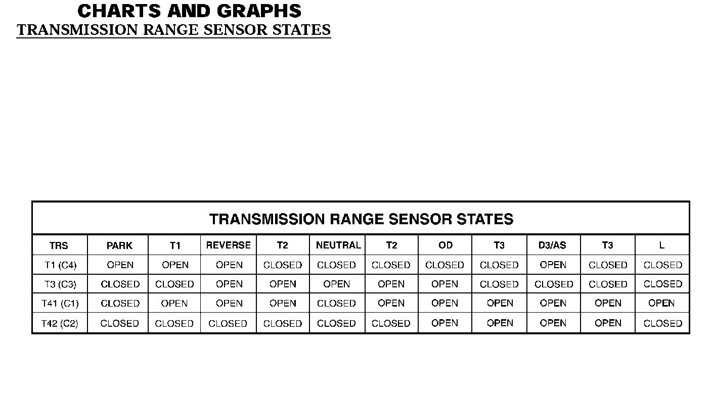 TRANSMISSION RANGE SENSOR STATES: