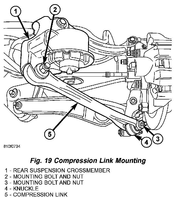 4. Remove bolt and nut mounting link at crossmember (Fig. 19).