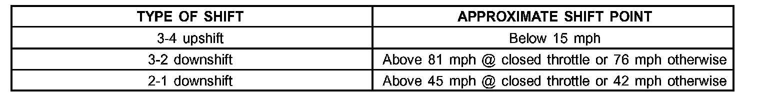 AUTOMATIC SHIFTS WILL OCCUR UNDER THE FOLLOWING CONDITIONS: