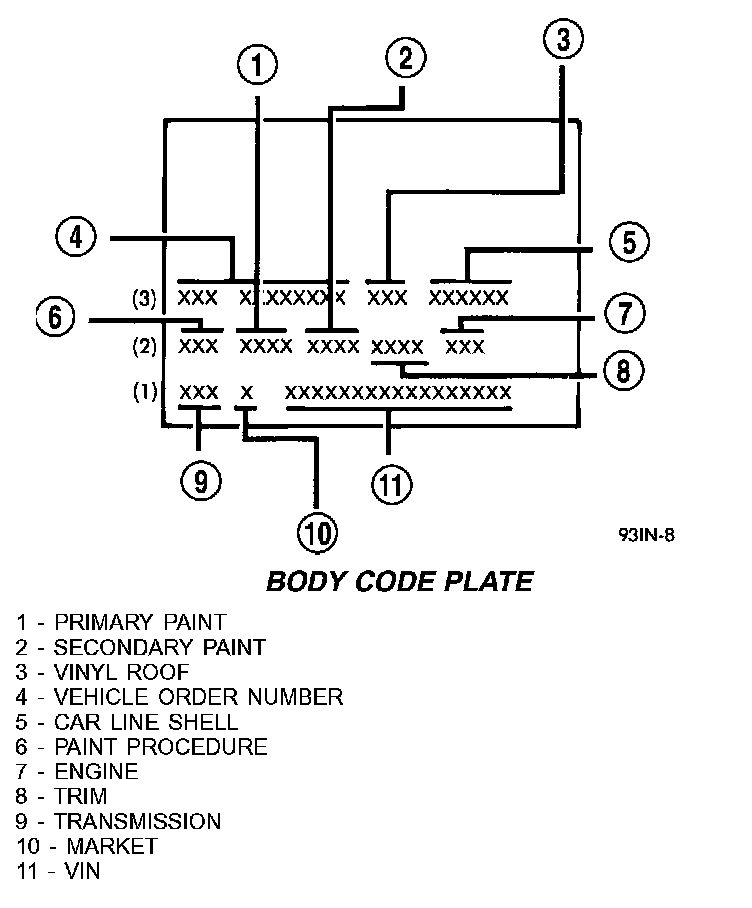 - Refer to Vehicle Identification Number (VIN) paragraph for proper breakdown of VIN code.