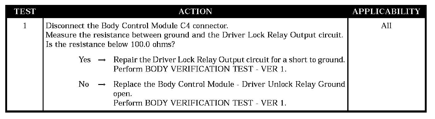 Driver door unlock relay output CKT short to ground