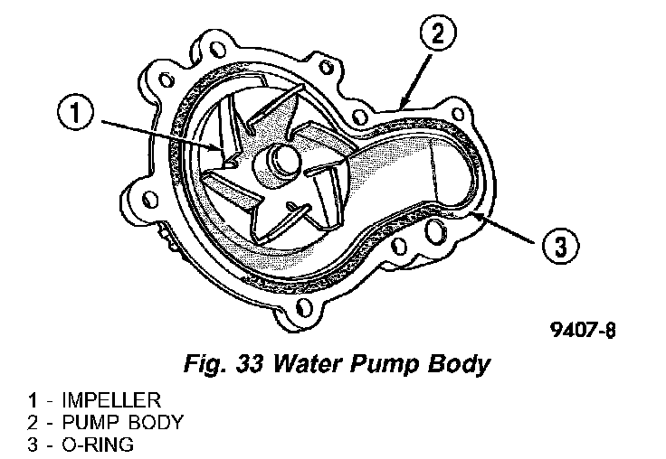 1. Install new O-ring gasket in water pump body O-ring groove (Fig. 33).