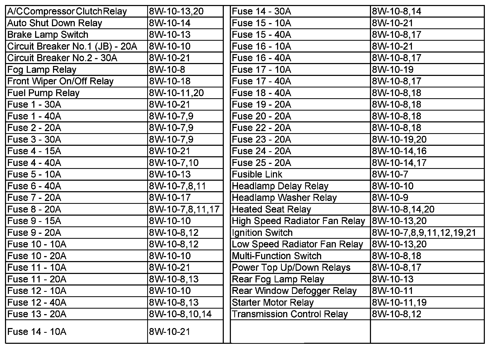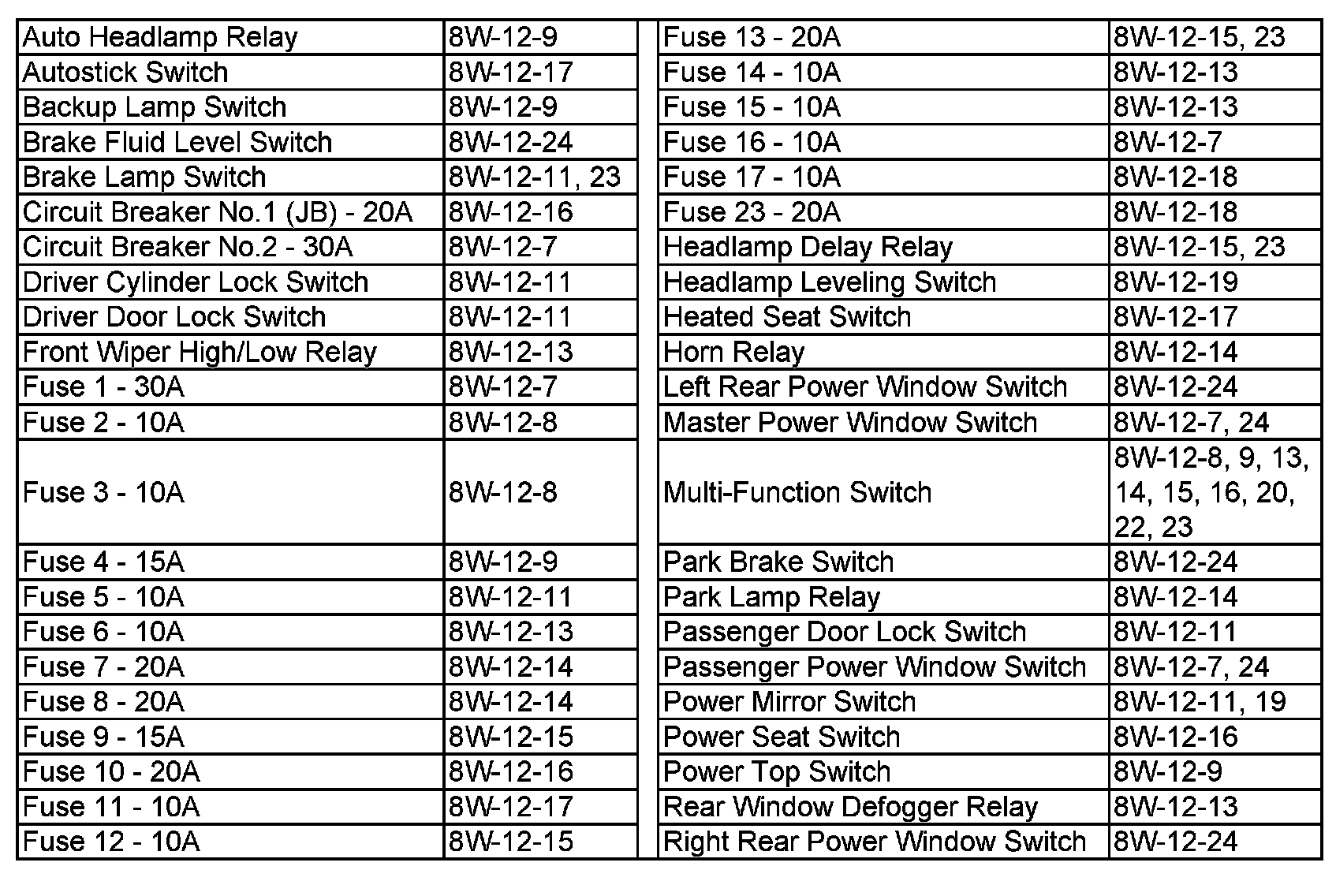 Junction Block Circuits (Auto Headlamp Relay - Right Rear Power Window Switch):