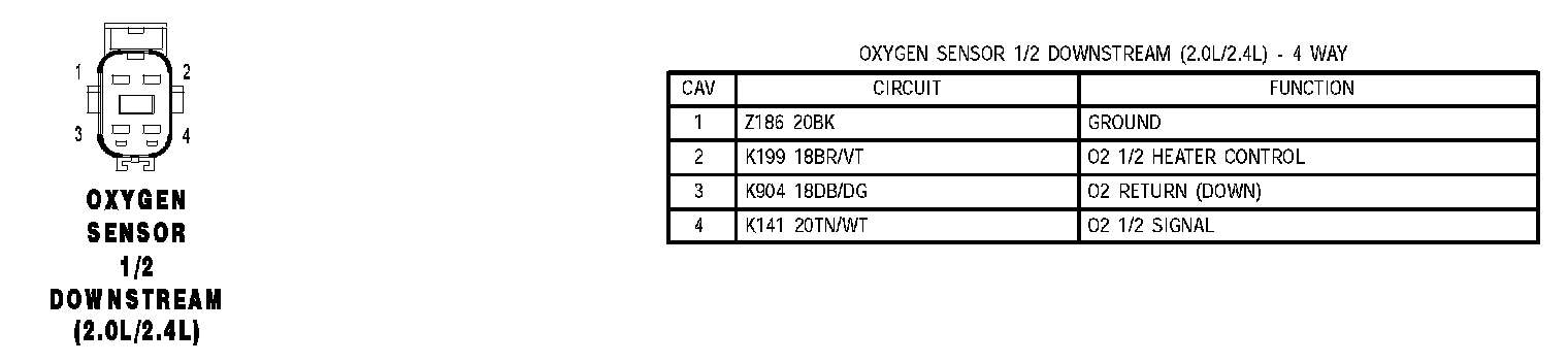 Oxygen Sensor 1/2 Downstream (2.0L/2.4L):