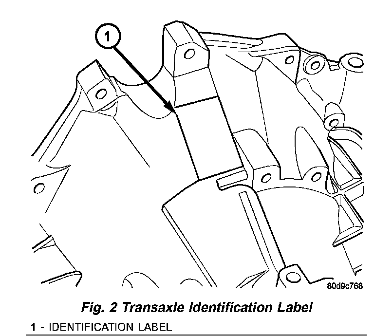 The 41TE transaxle is identified by a barcode label (1) (Fig. 2) that is fixed to the transaxle case.