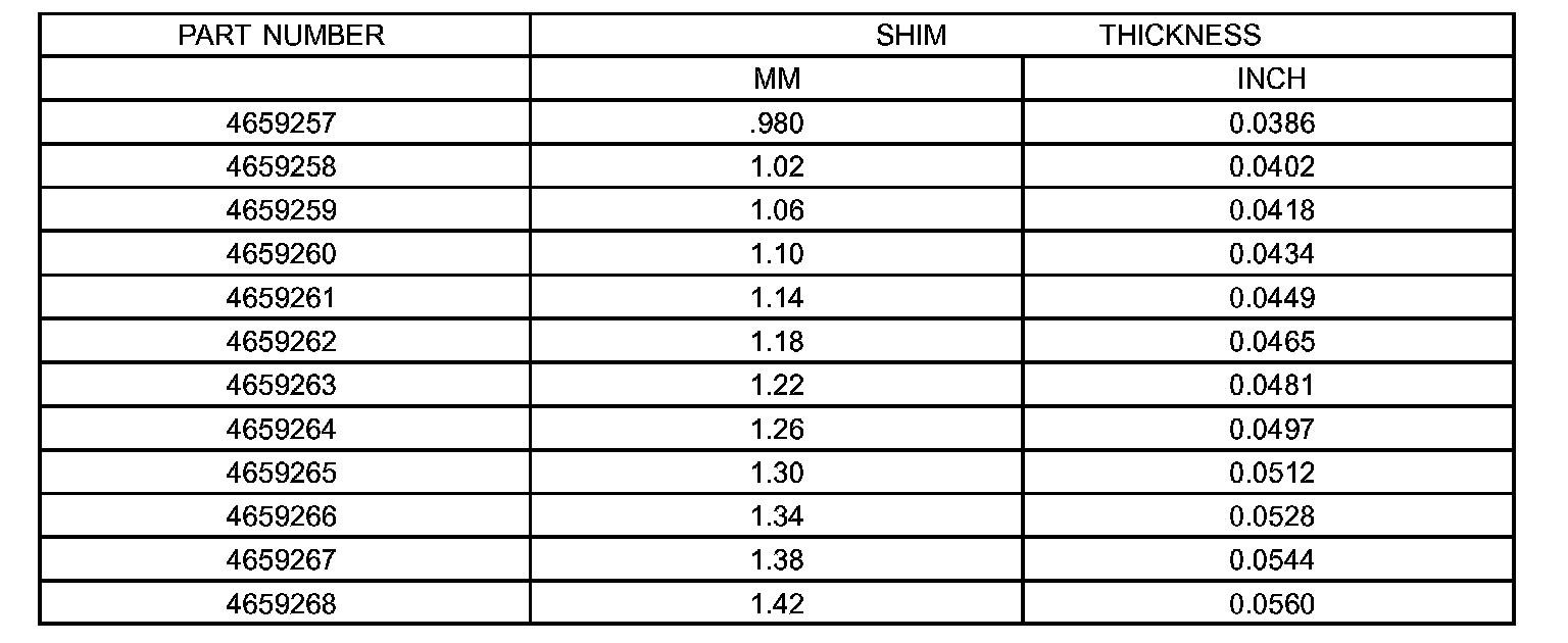(e) If the turning torque was too high when measured, install a 0.05 mm (0.002 inch) thinner shim. If the turning torque is was too low, install a 0.05 mm (0.002 inch) thicker shim. Repeat until 5 to 18 inch lbs. turning torque is obtained. Oil Baffle is not required to be installed when making shim selection.