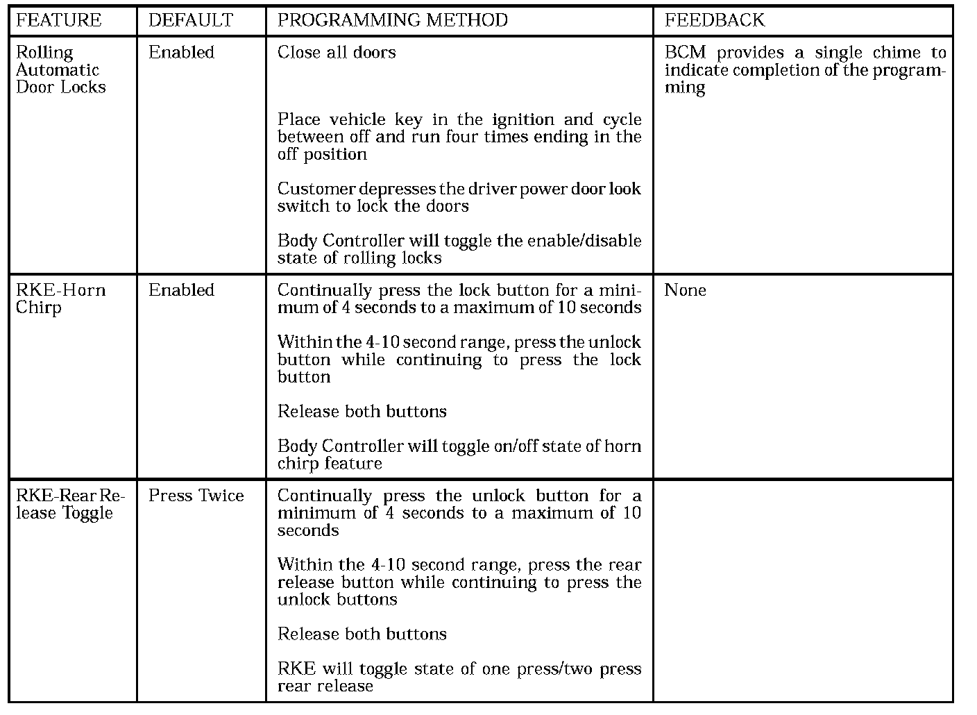 Door Lock Inhibit (key in ignition or headlamps/ park lamps on)