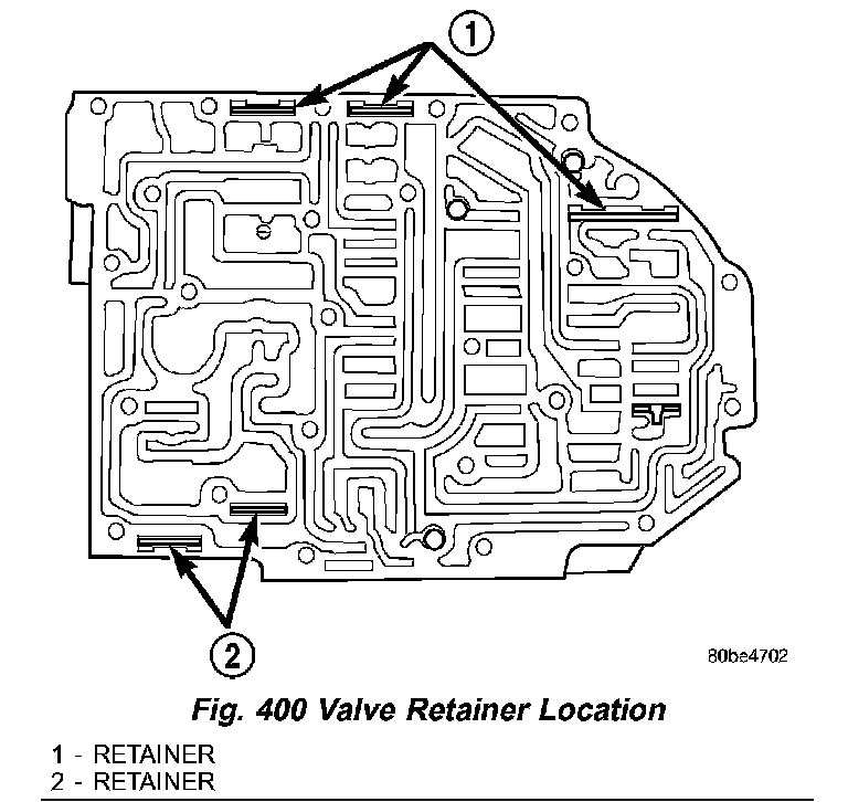 (4) Verify that all retainers are installed (1,2) (Fig. 400). Retainers should be flush or below valve body surface.