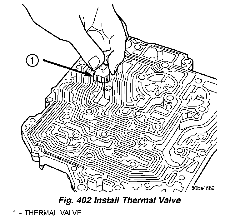 (6) Install thermal valve (1) (Fig. 402) into transfer plate.