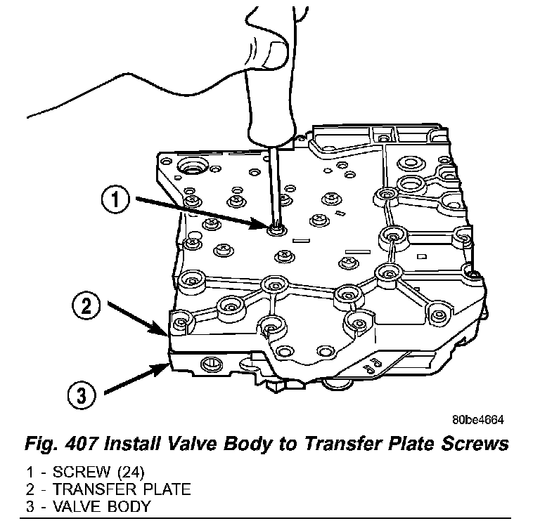 Fig.407 Install Valve Body To Transfer Plate Screws: