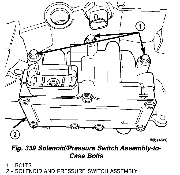 Fig.339 Solenoid/Pressure Switch Assembly-to-Case Bolts: