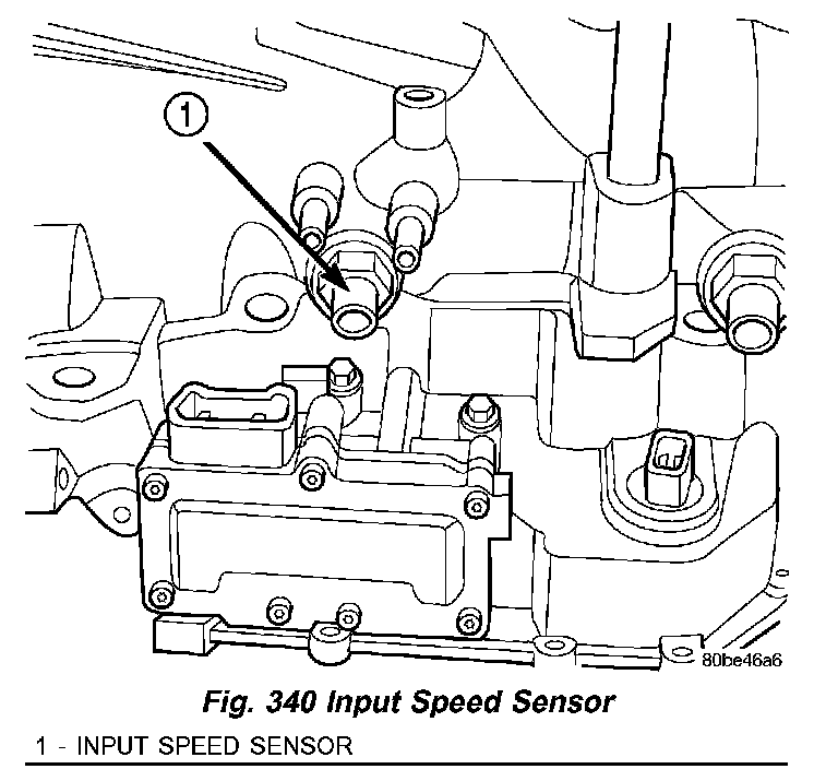 (3) Install input speed sensor (1) (Fig. 340) and torque to 27 Nm (20 ft. lbs.).