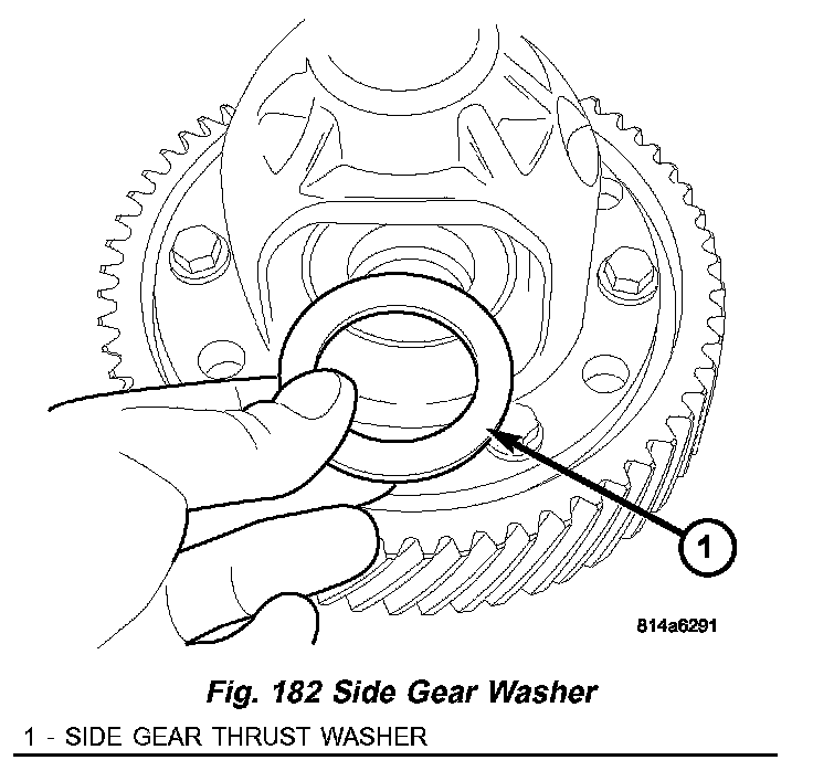 (2) Install side gear thrust washers (1) (Fig. 182).