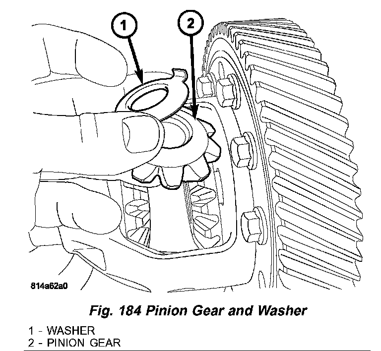 (4) Install pinion gears (2) (Fig. 184) and thrust washers (1) 180° apart.