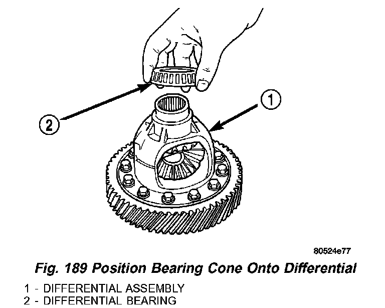 (9) Position differential side bearing cone (2) (Fig. 189) onto differential.