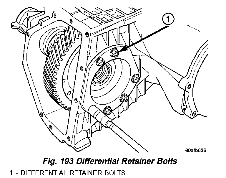 (16) Install bearing retainer with a bead of Mopar Silicone Rubber Adhesive Sealant and torque bolts (1) (Fig. 193) to 28 Nm (250 inch lbs.).