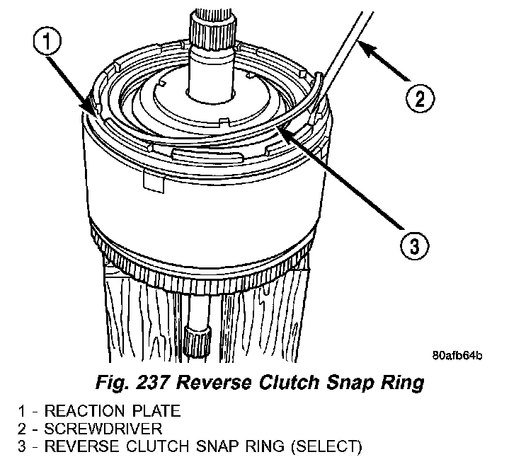 (3) Remove reverse clutch snap ring (3) (Fig. 237).
