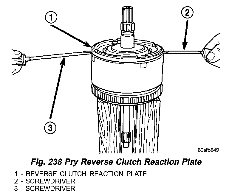 (4) Pry up (2,3) (Fig. 238) and remove reverse clutch reaction plate (1).