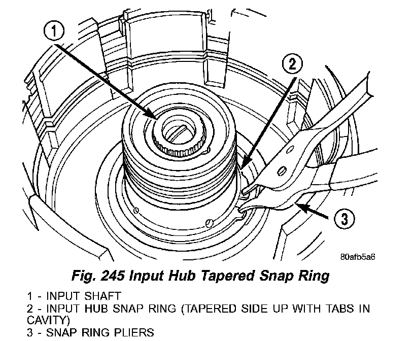 (15) Remove input hub tapered snap ring (2) (Fig. 245).