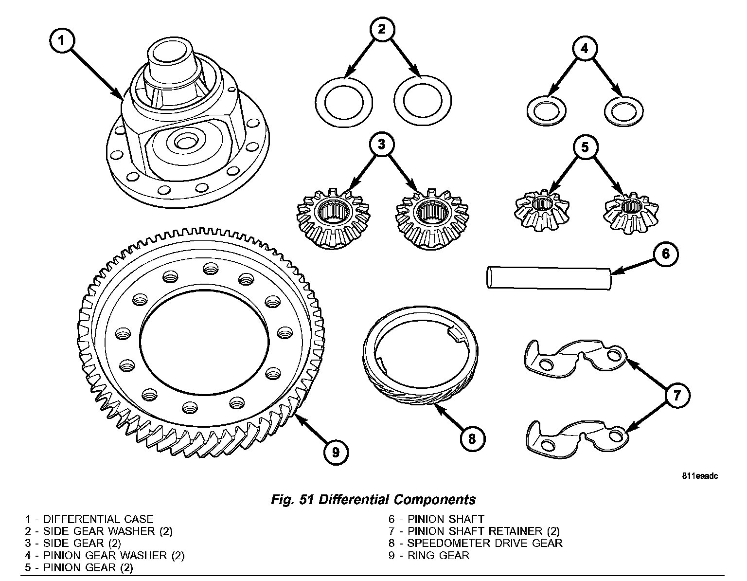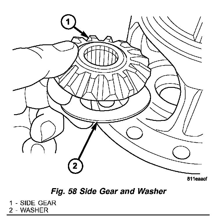 (7) Remove side gears (1) (Fig. 58) and thrust washers.