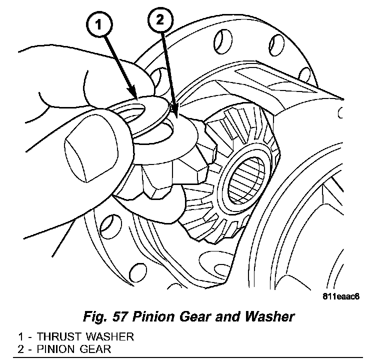 (6) Remove pinion gear (2) (Fig. 57) and thrust washers (1).