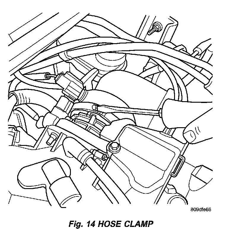 3. Install throttle body air inlet hose to throttle body Tighten hose clamp (Fig. 14).