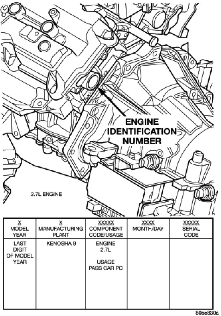 The engine identification number is located on the rear of the cylinder block just below the left cylinder head