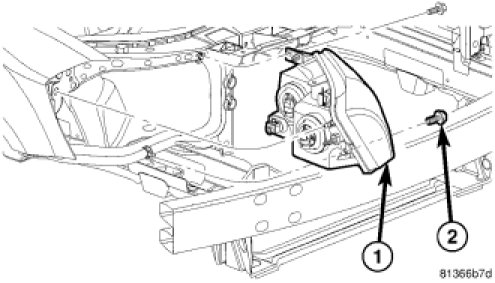 1. Position the headlamp unit in the opening in the headlamp mounting cross-member.