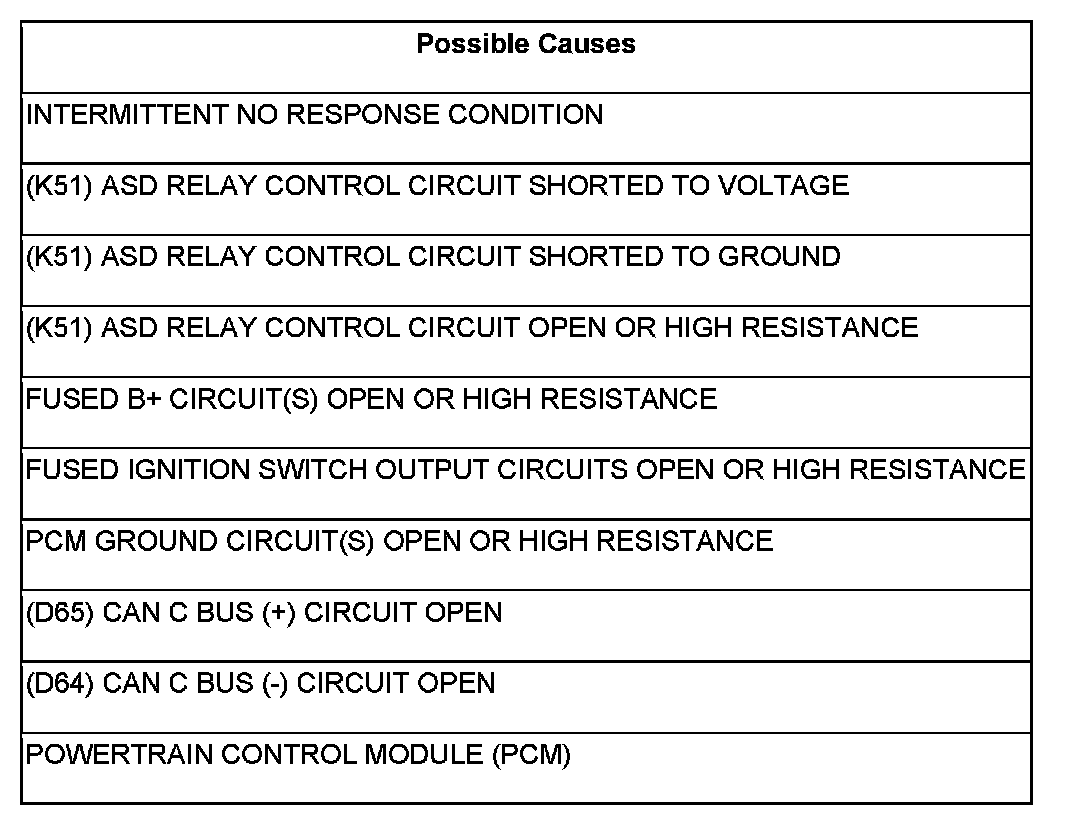 - Repair the (K51) ASD Relay Control circuit for a short to voltage.