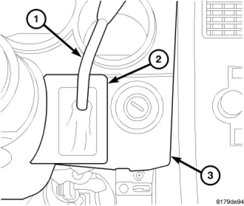 13. Unsnap the gear shift lever boot (2) from the cluster bezel (3). Slide the boot up the gear shift lever (1), away from the bezel.