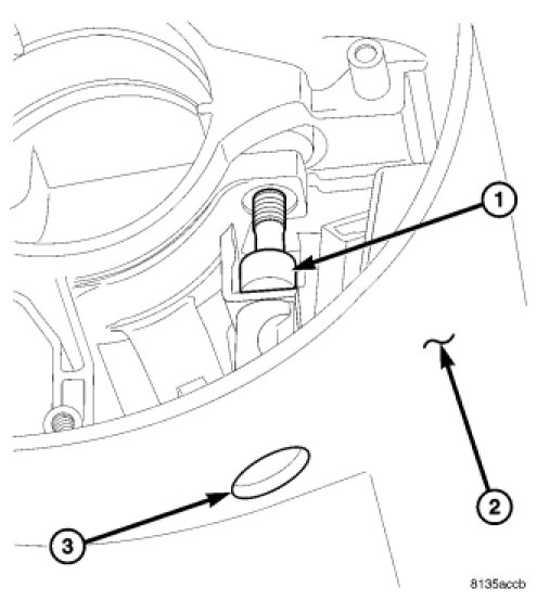 8. Back out the set screw (1) through the access hole (3) in the steering column control module (SCCM) (2) securing the multi-function SCCM assembly.