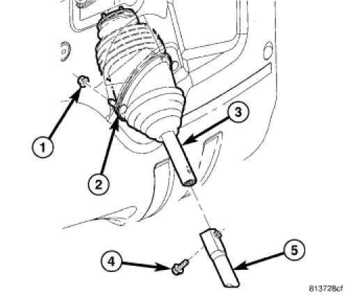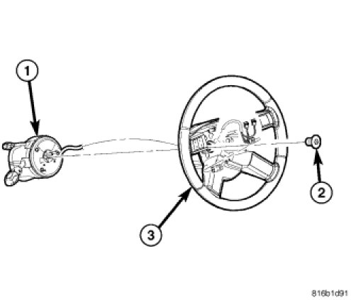 4. Remove the steering wheel retainer bolt (2), then slide the steering wheel (3) off the steering column (1) shaft.