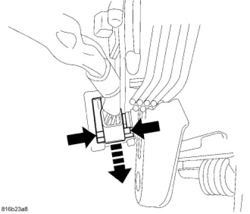 21. Depress the tabs on the rear of the column wiring harness connector and remove the connector from the steering column.