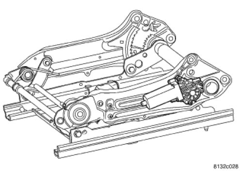 The lower power seat adjuster contains one reversible motor that is connected to a worm-drive gearbox that moves the seat adjuster through a screw-type drive unit. On vehicles equipped with non-memory power seats, the motor will contain a self-resetting circuit breaker to protect it from overload. On vehicles equipped with memory power seats the motor overload protection is a function of the Memory Seat Module (MSM). The motor is part of the lower power seat track unit and must be replaced as an assembly.