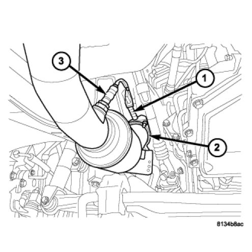 21. Connect the left exhaust pipe to the exhaust manifold (2) and connect the oxygen sensor (3)