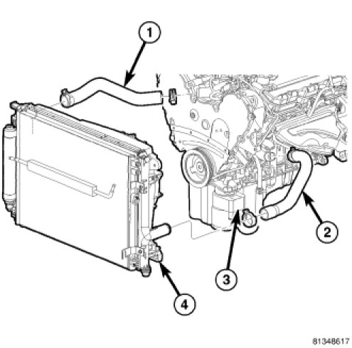 27. Connect the lower radiator hose (2).