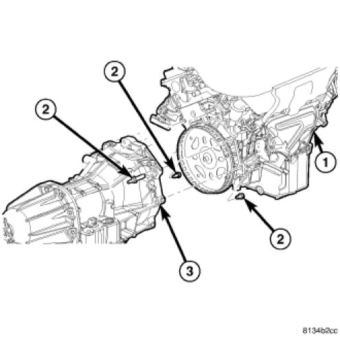 17. Install the torque converter bolts (3). Tighten bolts to 75 Nm (55 lbs.ft.).