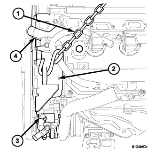 26. Connect the oil cooler hose at the cooler (3) and secure the cooler hose retainer at the transmission.