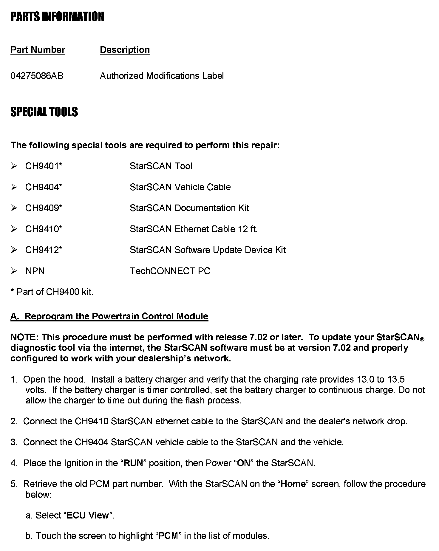 ^ To correct this condition, the PCM must be reprogrammed. - Authorized Modification Label #04275086AB required.
