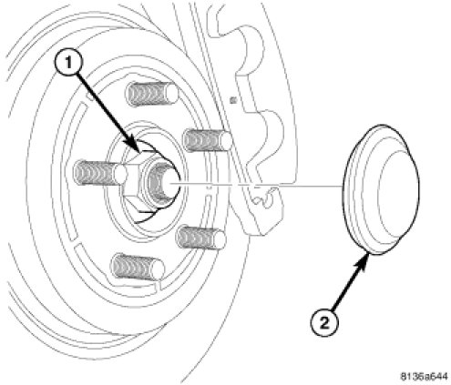 4. Install NEW dust cap (2) on hub and bearing.